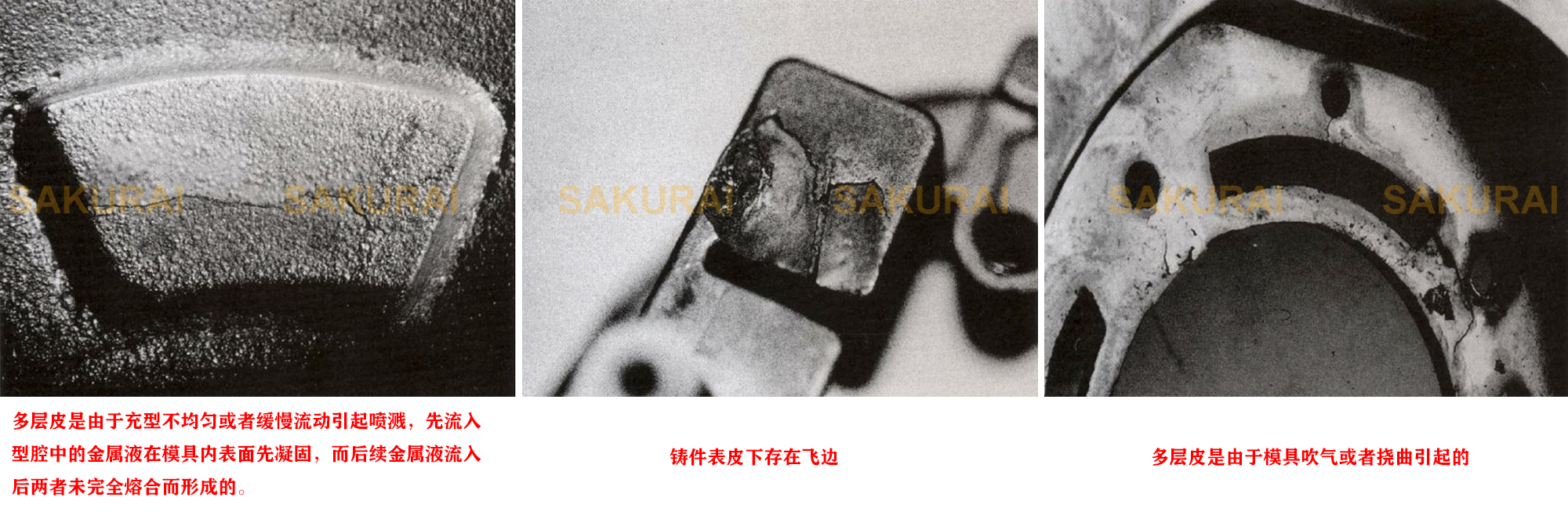 缺陷:多層皮:鑄件表面或內(nèi)部有明顯的多層金屬皮